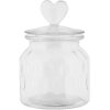 Barattolo in vetro robusto, manico del coperchio a forma di cuore, ideale per alimenti e decorazioni, Ø 11 cm, altezza 16 cm, perfetto fascino da casa di campagna