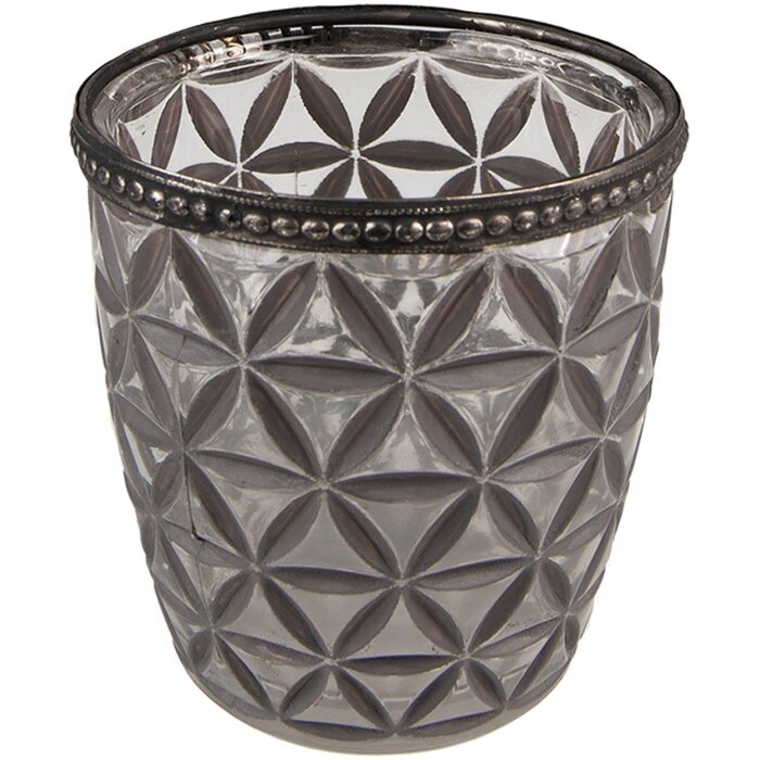 Clayre & Eef 6GL3966 Portacandele in vetro grigio Ø 9x9 cm