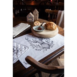 Tovaglietta motivo cervo, 48x33 cm, set di 6, beige, stile casa di campagna, cotone, ideale per le occasioni di festa