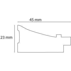 cornice lignea massiccia con ampia modanatura, scanalatura multipla, inclinazione verso l'interno, con passepartout smussati