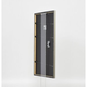 Cornice per quadri in legno massiccio a effetto, superficie con lamina spazzolata, profilo a blocco stretto