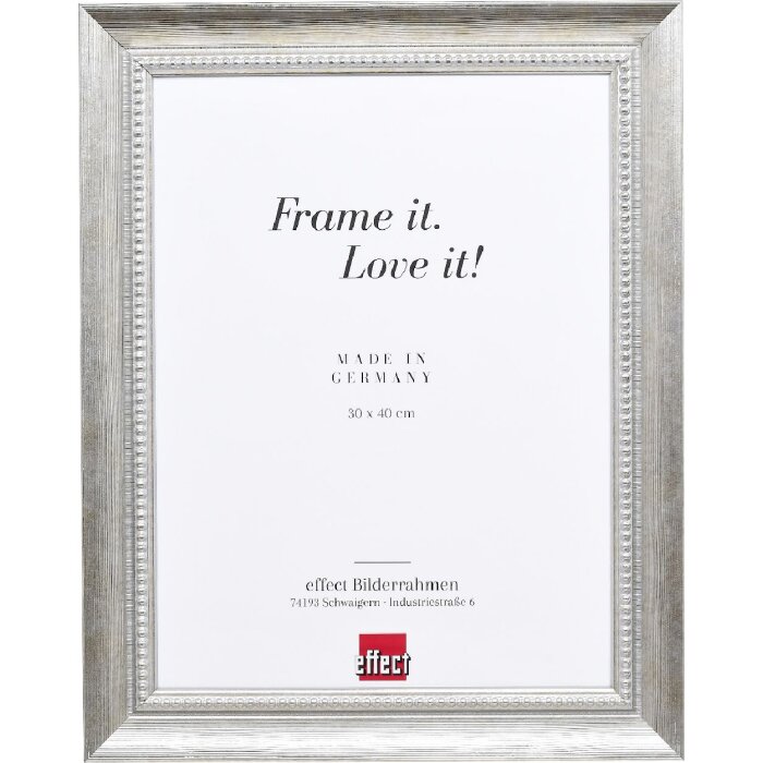 Effetto cornice in legno massiccio profilo 28 argento 29,7x42 cm vetro museale