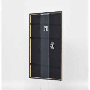 Cornice per quadri in legno massiccio a effetto, superficie con lamina spazzolata, profilo a blocco stretto