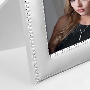 Cornice per ritratti in metallo ZEP, argento lucido, retro in legno bianco con supporto da esposizione