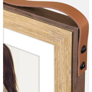 Elegante cornice in MDF effetto legno, spazio per 4 foto (10x15 cm), con elegante cinturino per il montaggio a parete, dimensioni complessive 34x34 cm